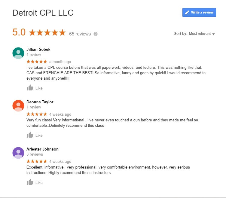 more when Detroit's number one Google Rated CPL class in Michigan is RIGHT